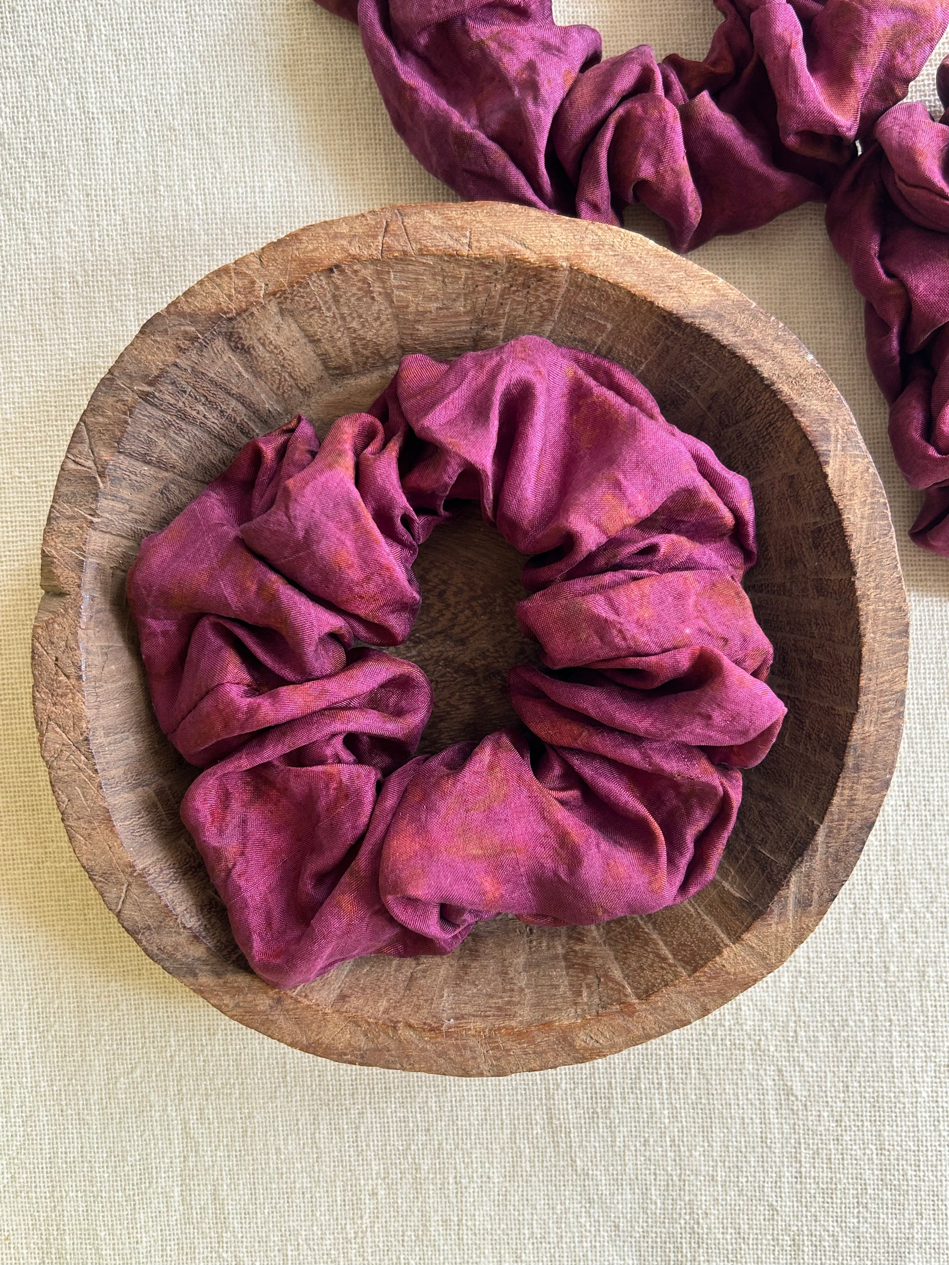 Silk scrunchies are kind to your hair and prevents breakage. Our silk scrunchies are plant dyed which kind to the environment as well.