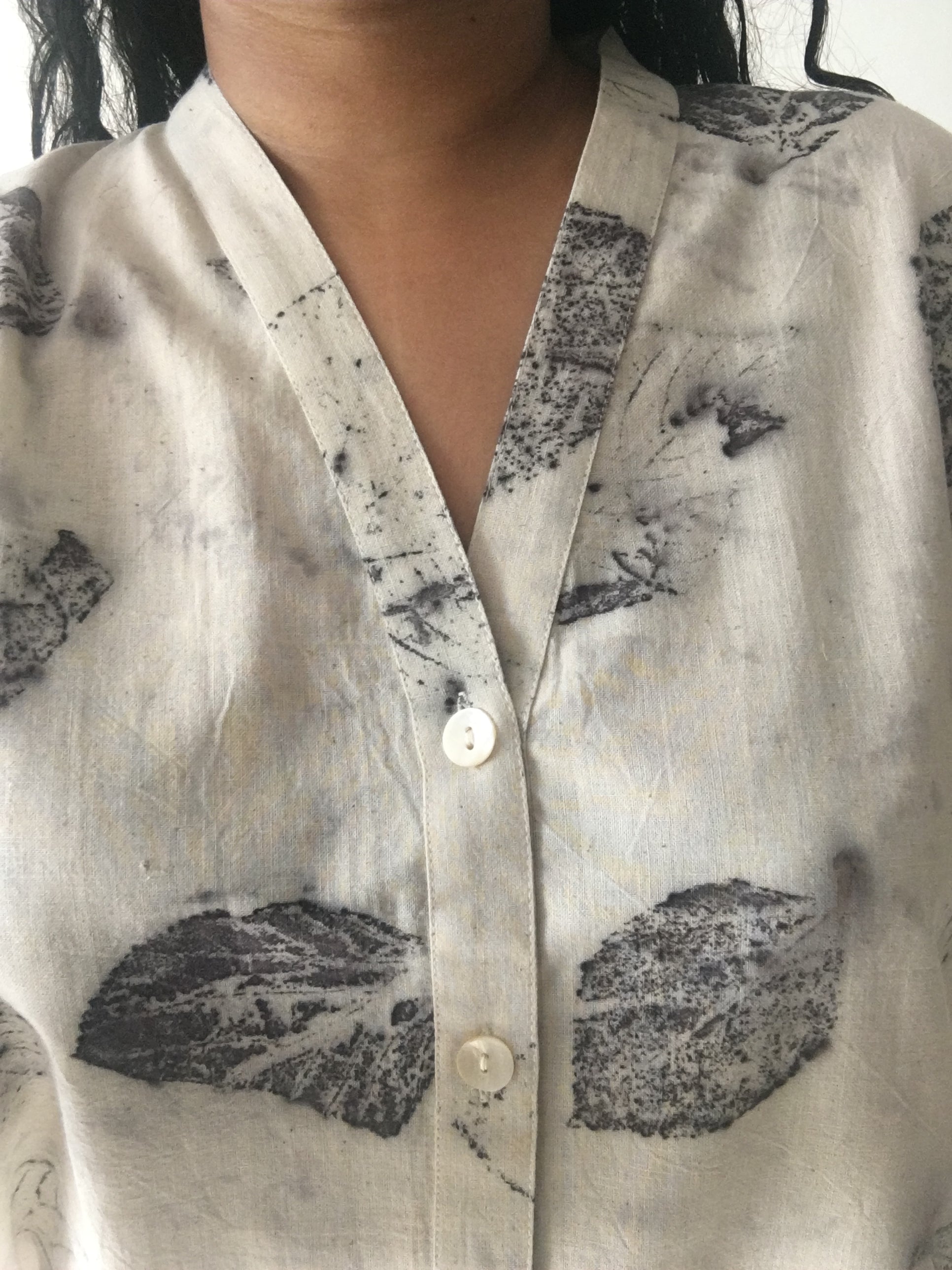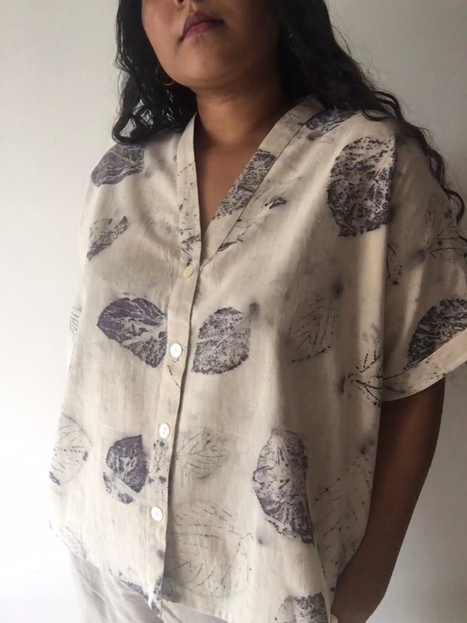 Handwoven & Handspun Cotton Kimono Shirt with a relaxed fit plant dyed with locally foraged leaves.