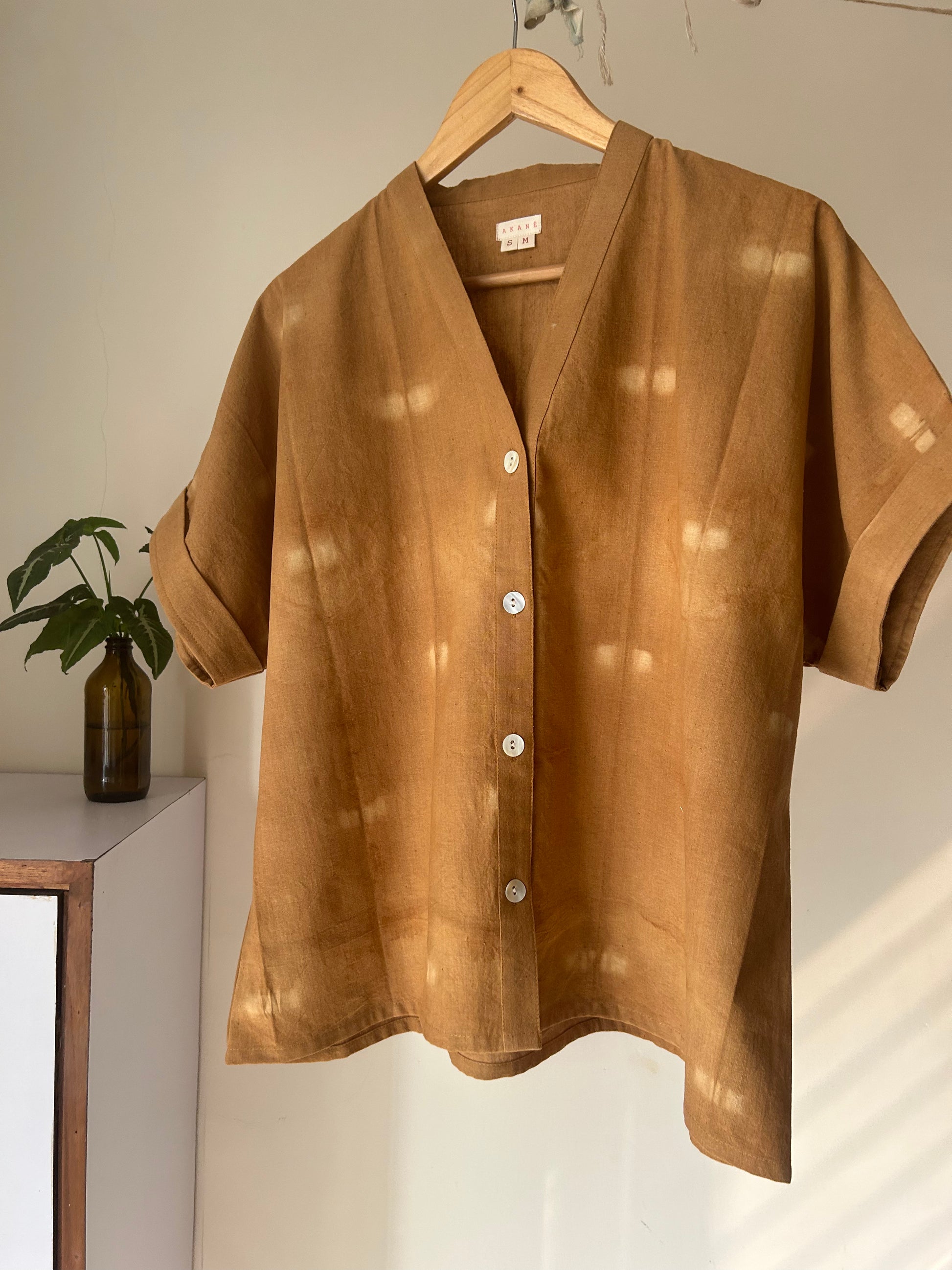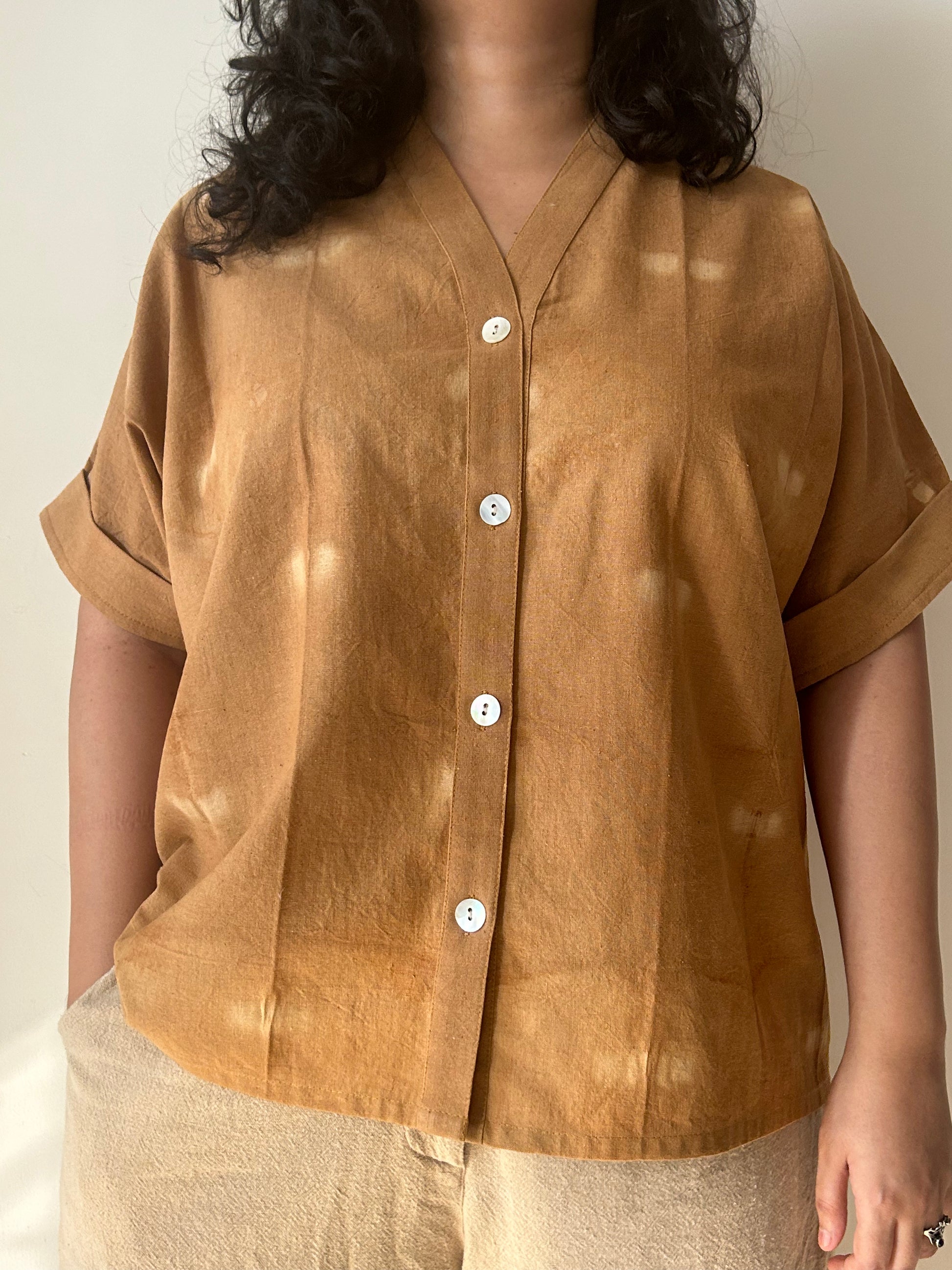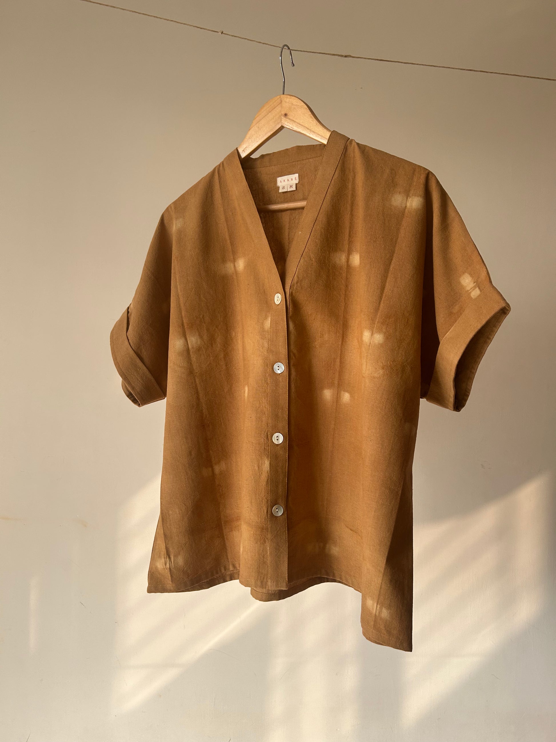 Made in handwoven Handwoven & Handspun cotton from West Bengal and hand dyed with Cutch, the kimono shirt is versatile effortlessly comfortable.