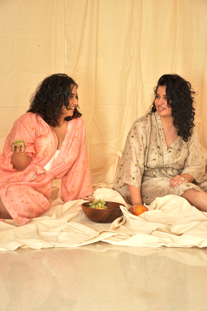 We created these robes as a way to celebrate self love. Self acceptance and love has been a long journey for both of us and there are always highs and lows but we are getting to a better place and space. And the clothes we wrap our bodies in also helps us in a big way. A piece of clothing like this is a true form of self care in a way for us.