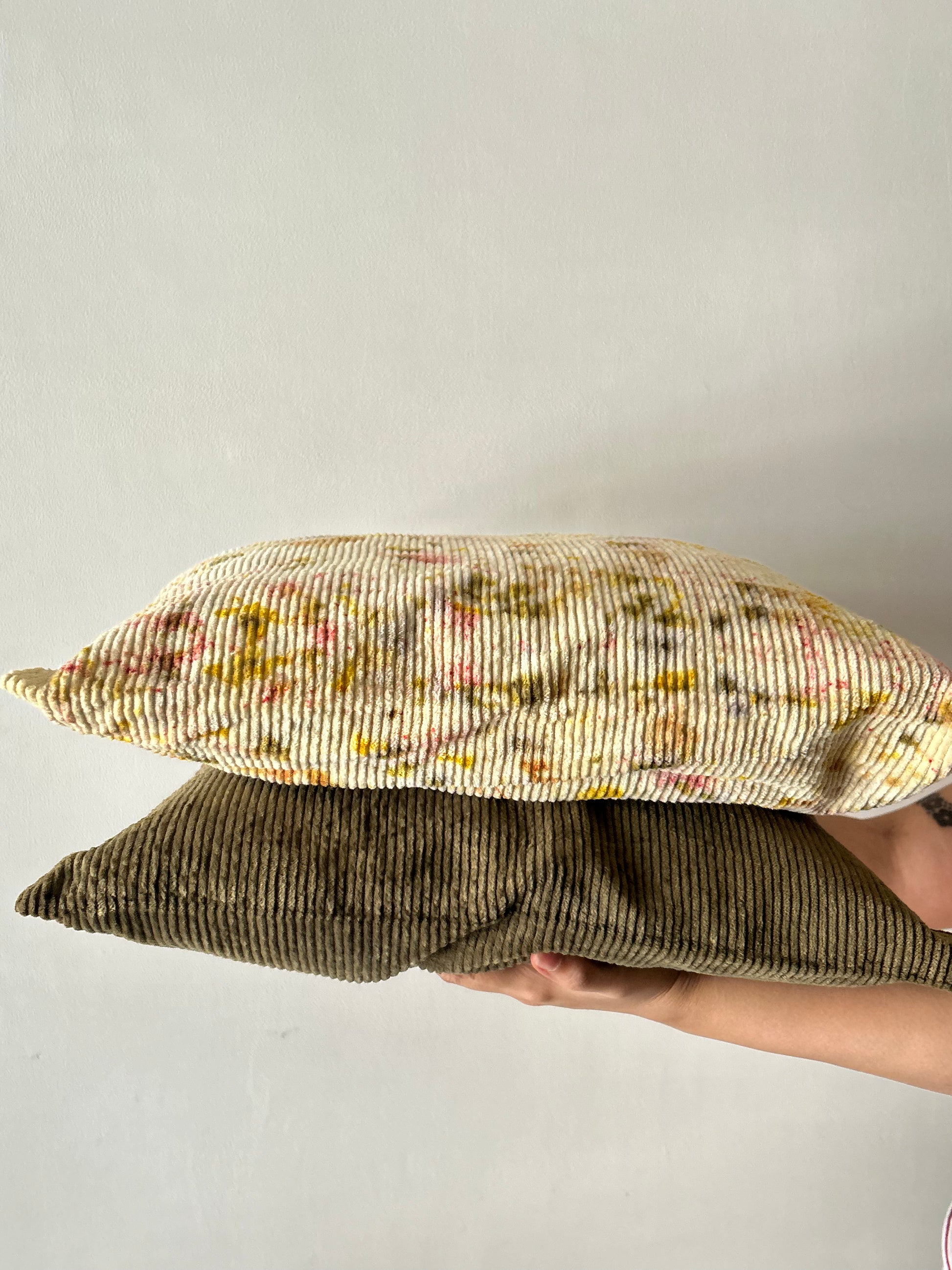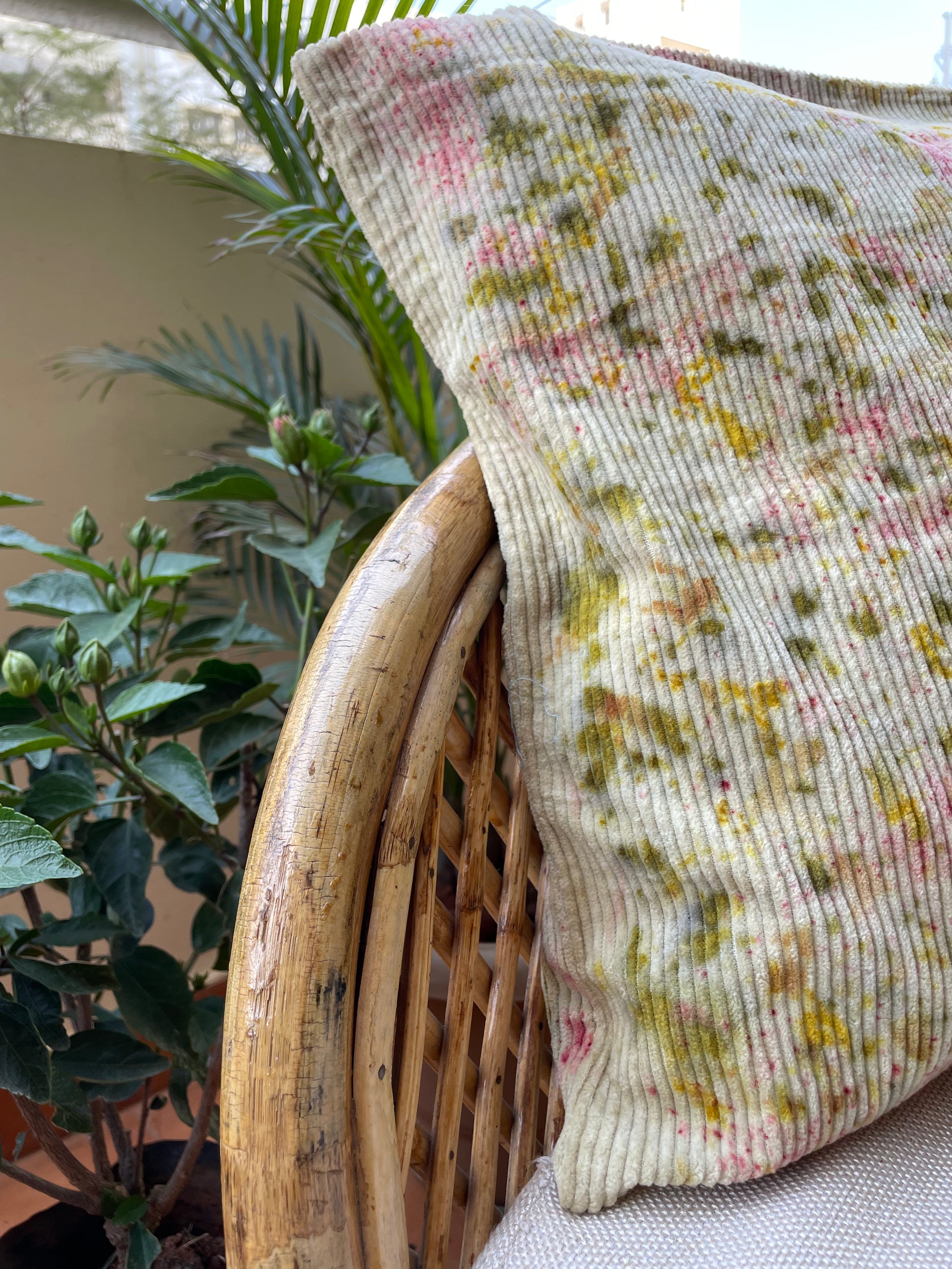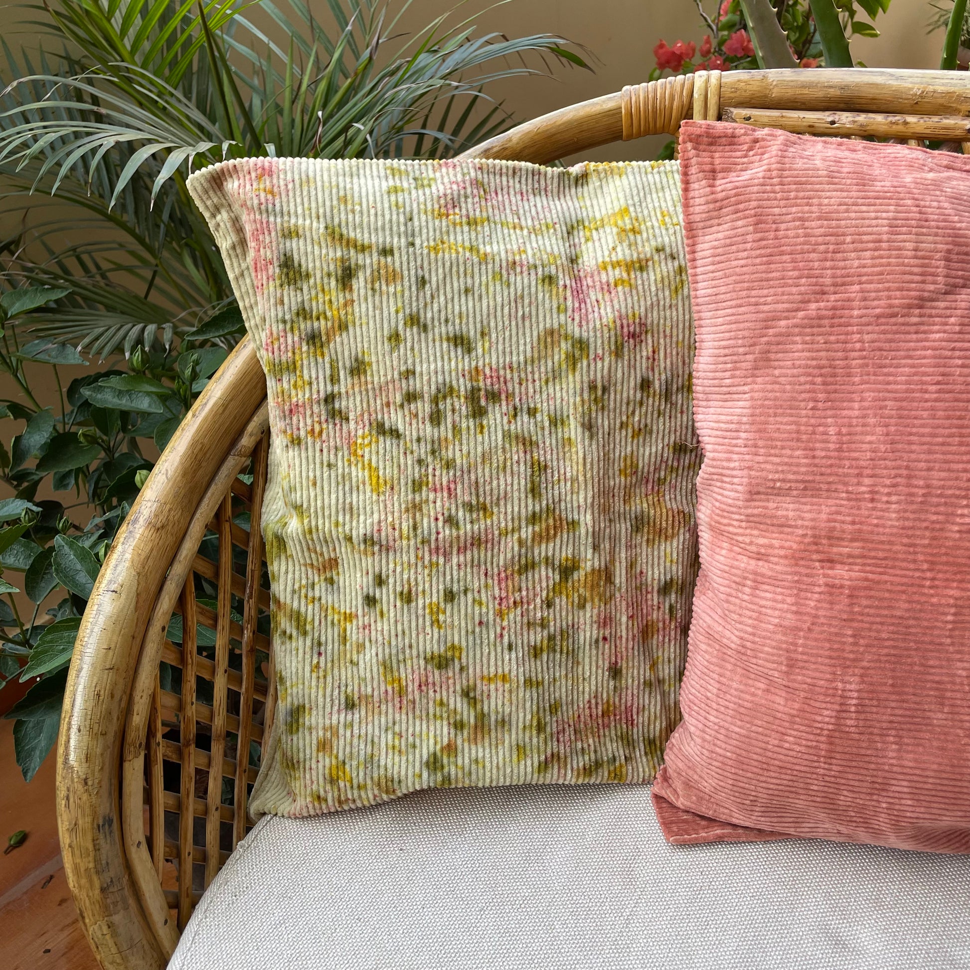 Made from 100% cotton corduroy, this cushion cover is naturally dyed using plant and flower extracts, giving it a soft, organic shade of pink. A collaboration between Green Tailor & Akané Studio, it celebrates the beauty of natural pigments and slow craftsmanship.