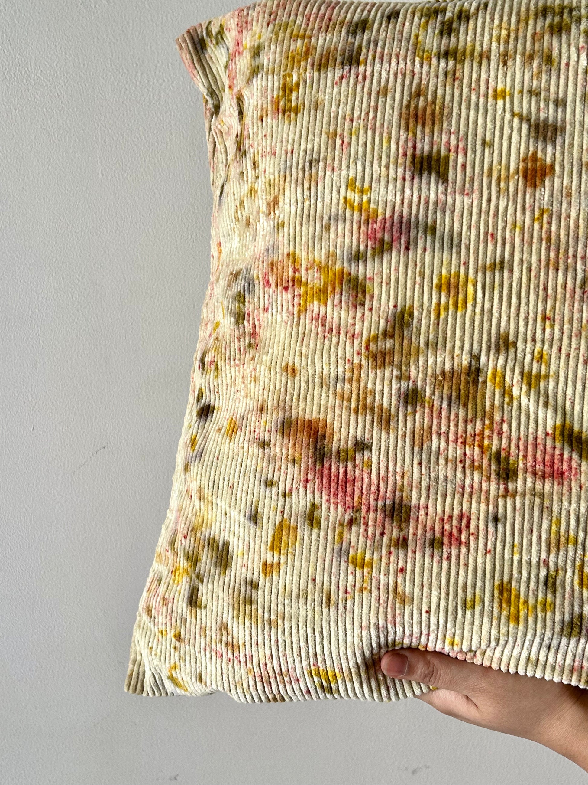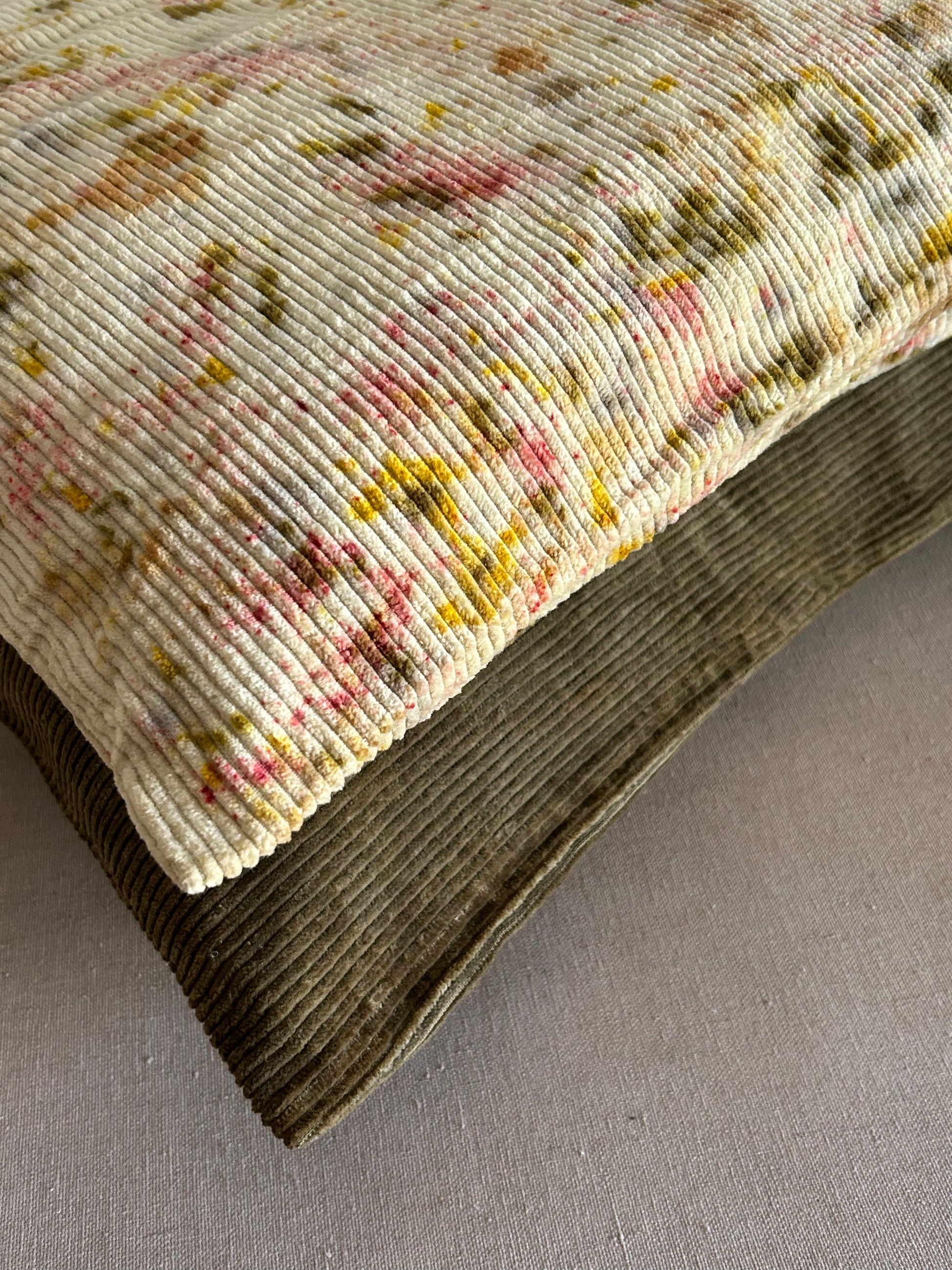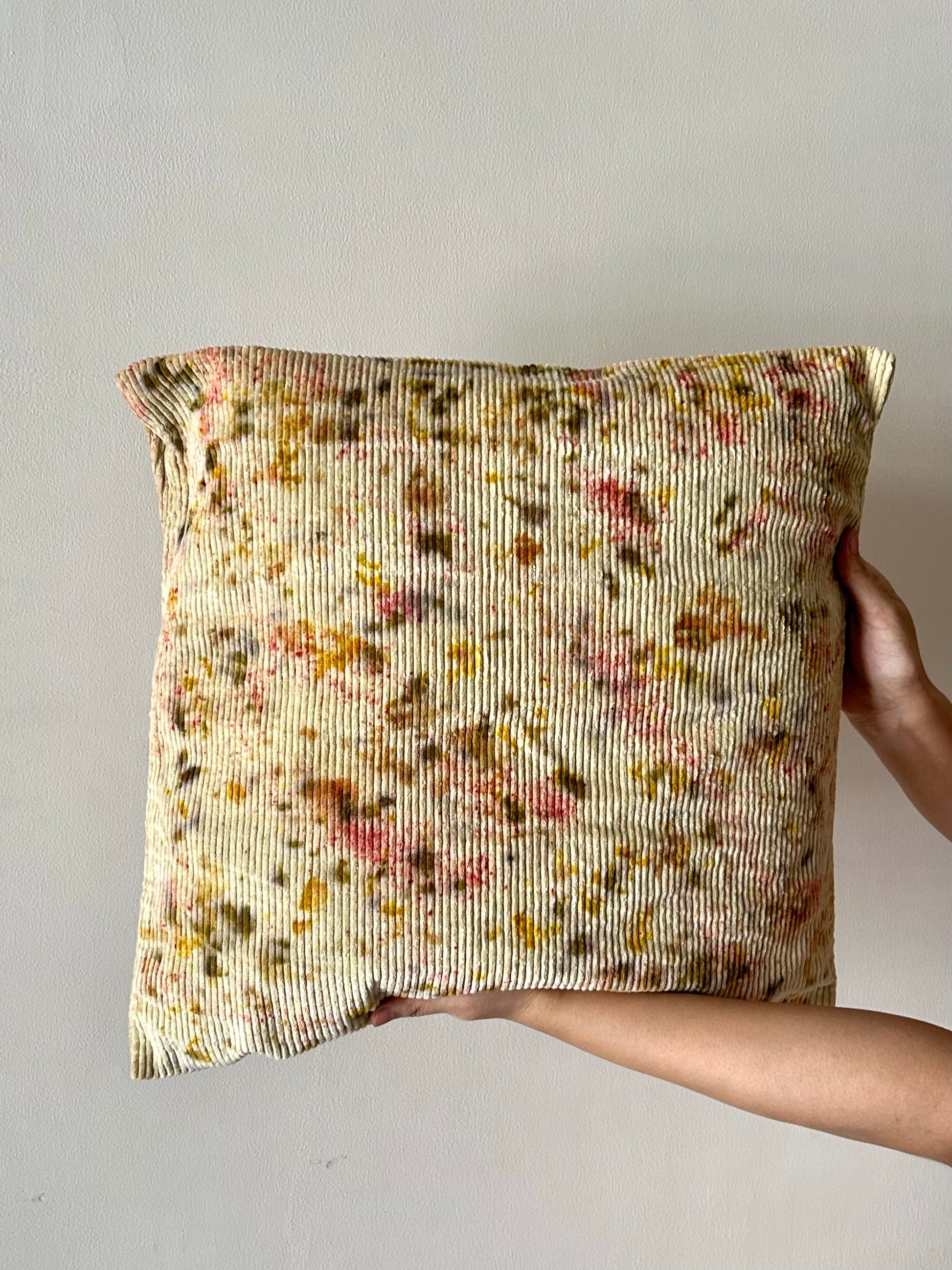 Made from 100% cotton corduroy, this cushion cover is naturally dyed using plant and flower extracts, giving it a soft, organic shade of pink. A collaboration between Green Tailor & Akané Studio, it celebrates the beauty of natural pigments and slow craftsmanship.