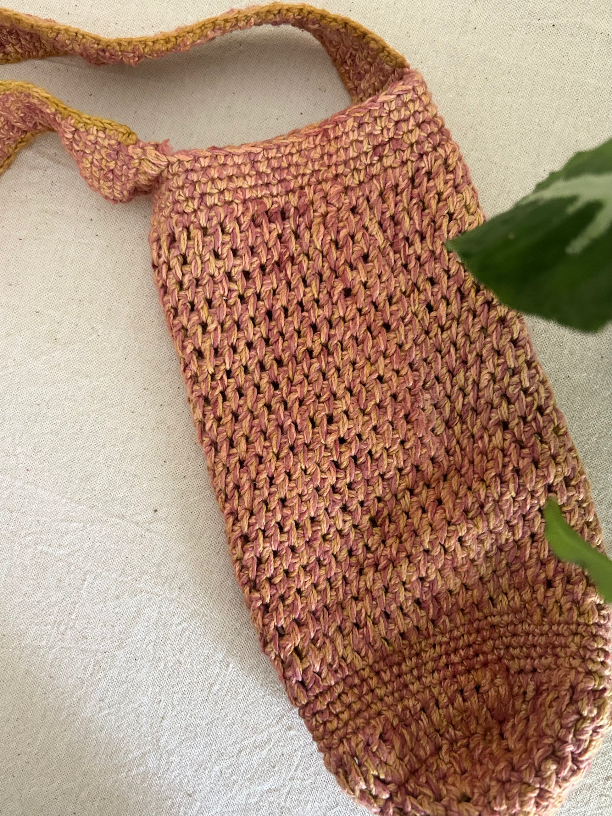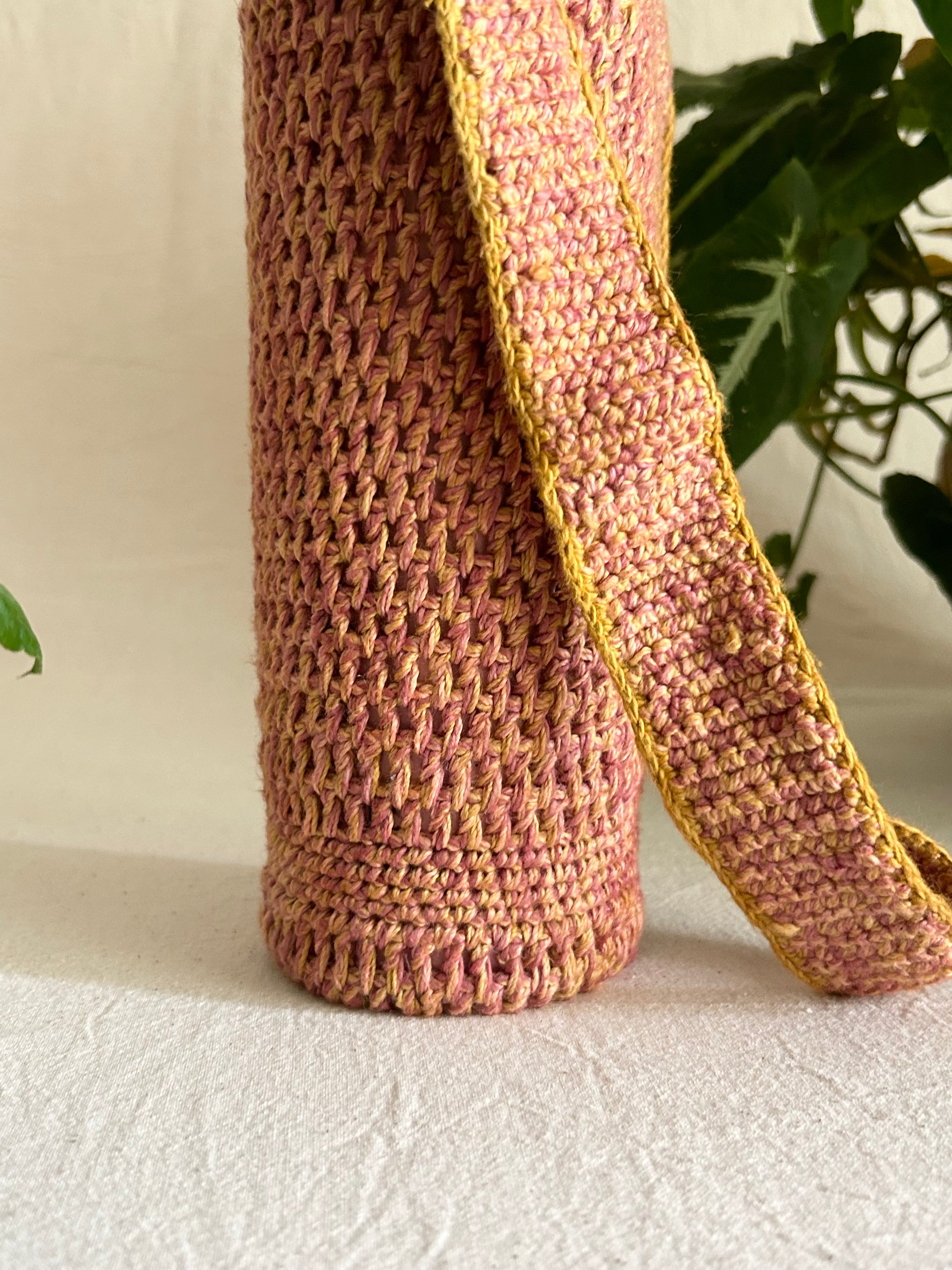 Introducing our handcrafted crochet bottle holder, lovingly made from plant-dyed cotton yarn. This versatile accessory is not just cute but also practical, designed to accompany you on all your adventures. Whether you’re hiking, picnicking, or simply commuting.