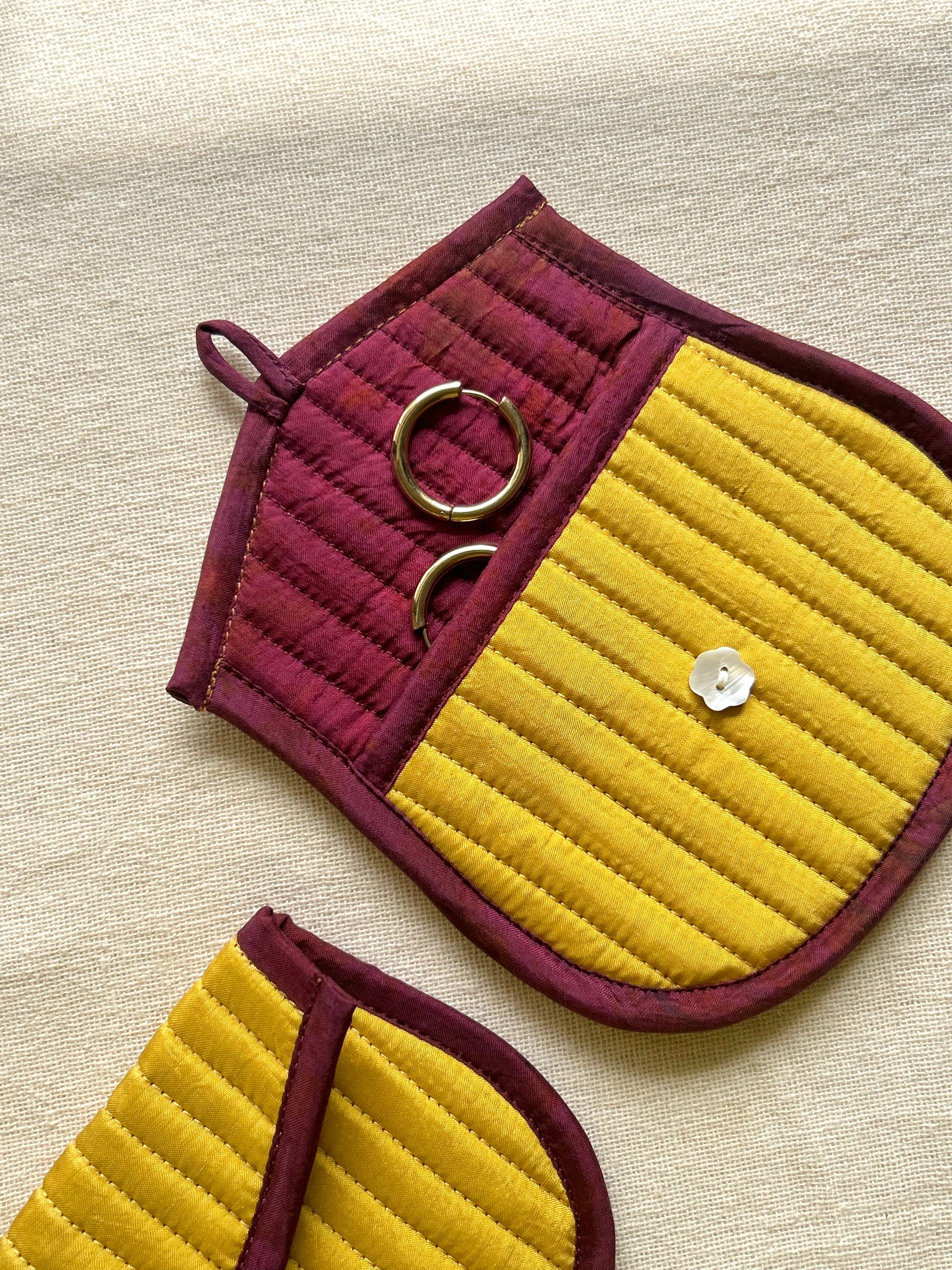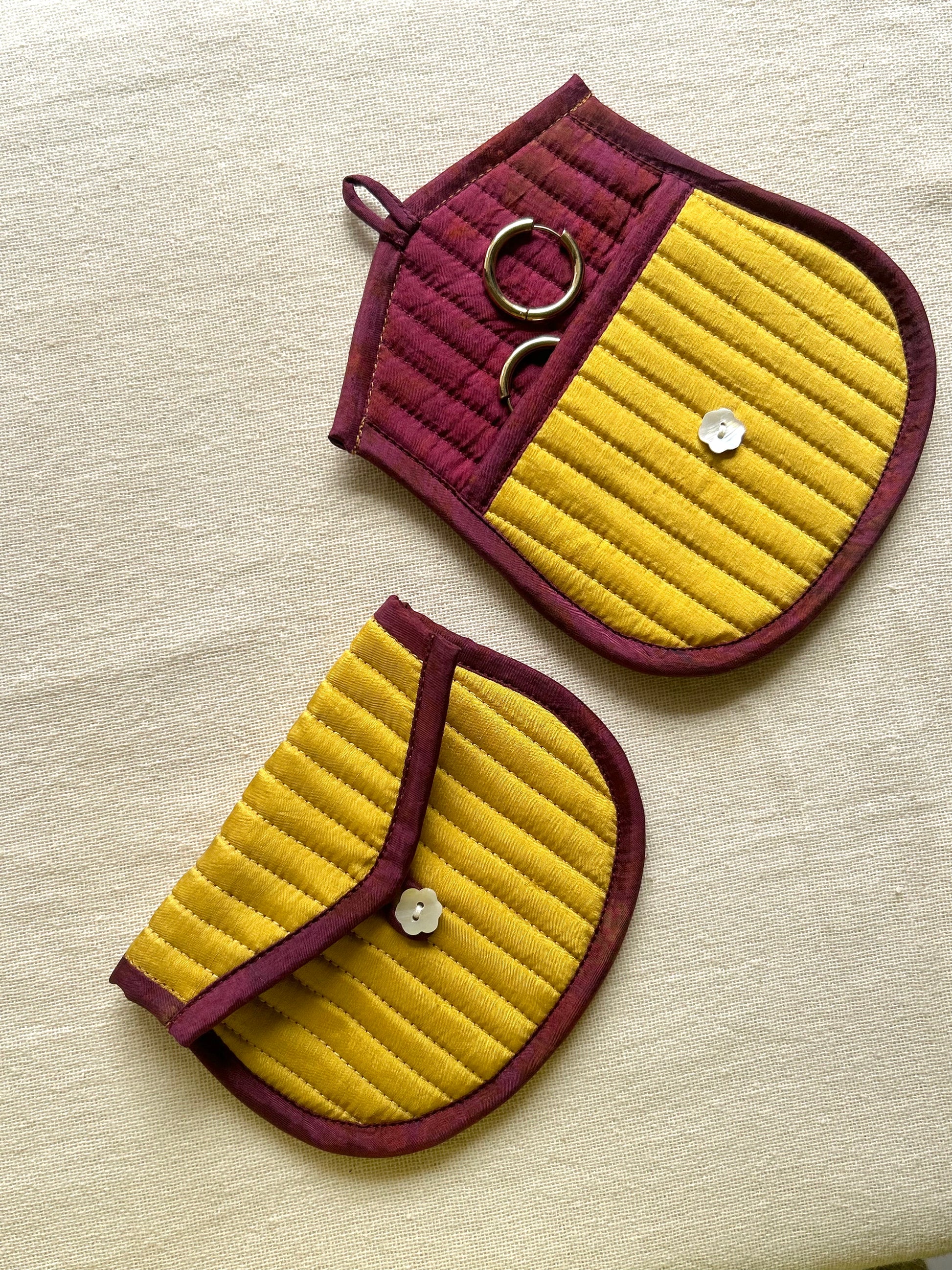 Our Silk Quilted Trinket Pouch is a charming and functional piece crafted with love and intention. Made using leftover pieces of our naturally dyed handwoven silk, this pouch celebrates a zero-waste approach.