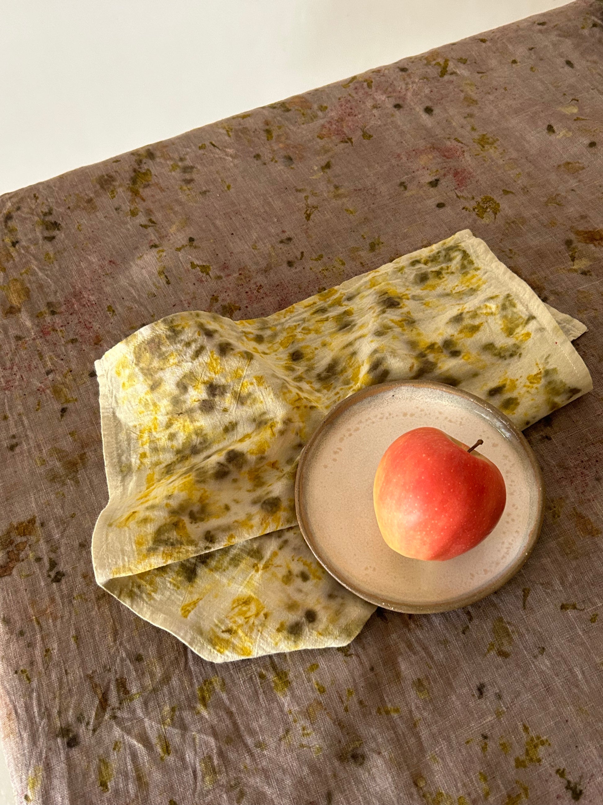 Bring a touch of elegance to your table with this 100% linen tablecloth, created in collaboration with Akané Studio. Naturally dyed with plant extracts, each piece reveals subtle nuances, making each one unique.