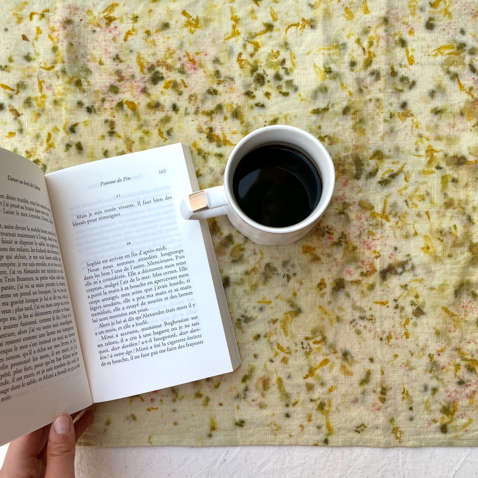 Add a touch of natural elegance to your table with our 100% linen table runner, the result of a collaboration between Green Tailor and Akané. Each piece is hand and naturally dyed with plant & flowers, offering subtle, organic nuances.