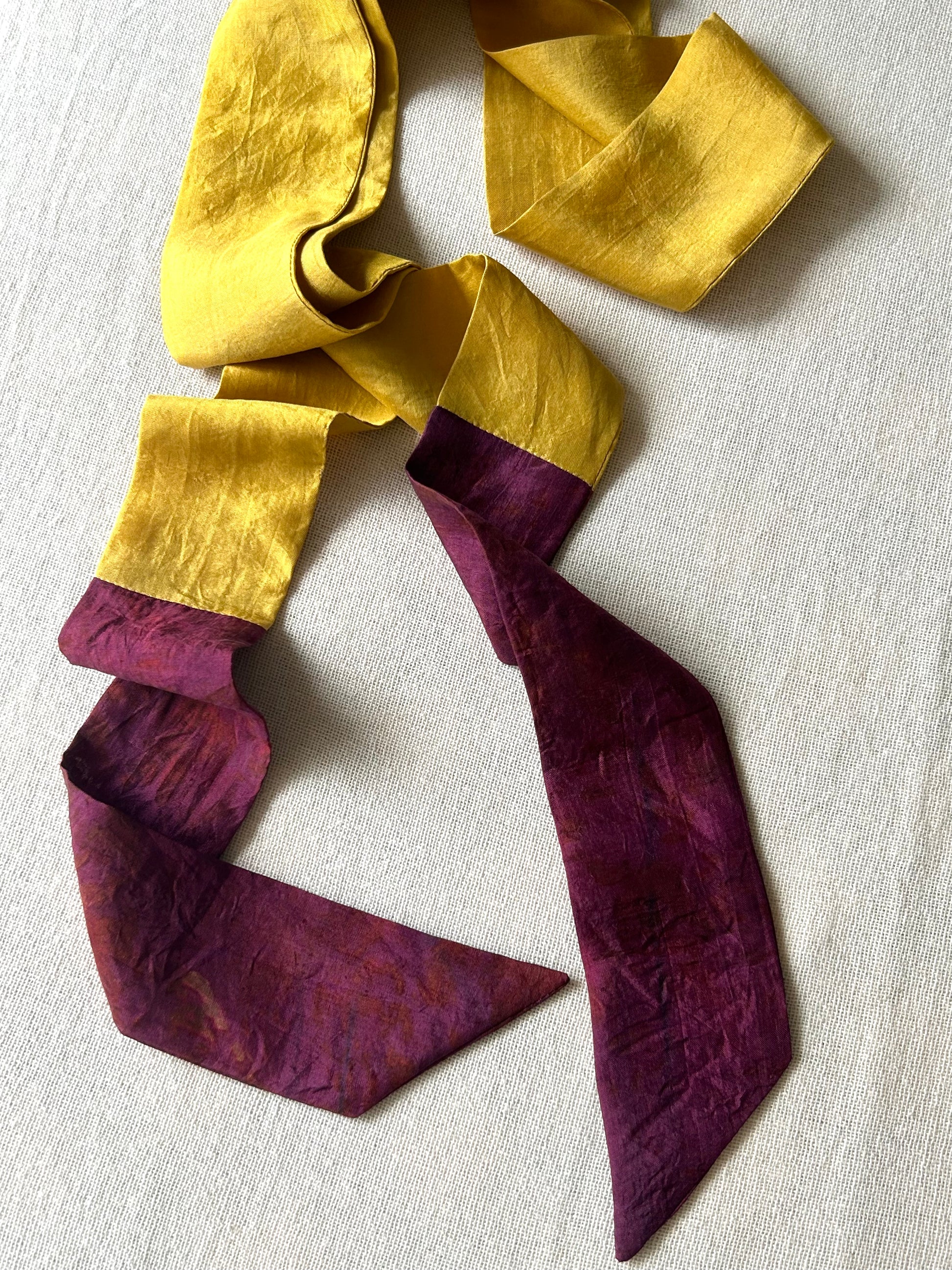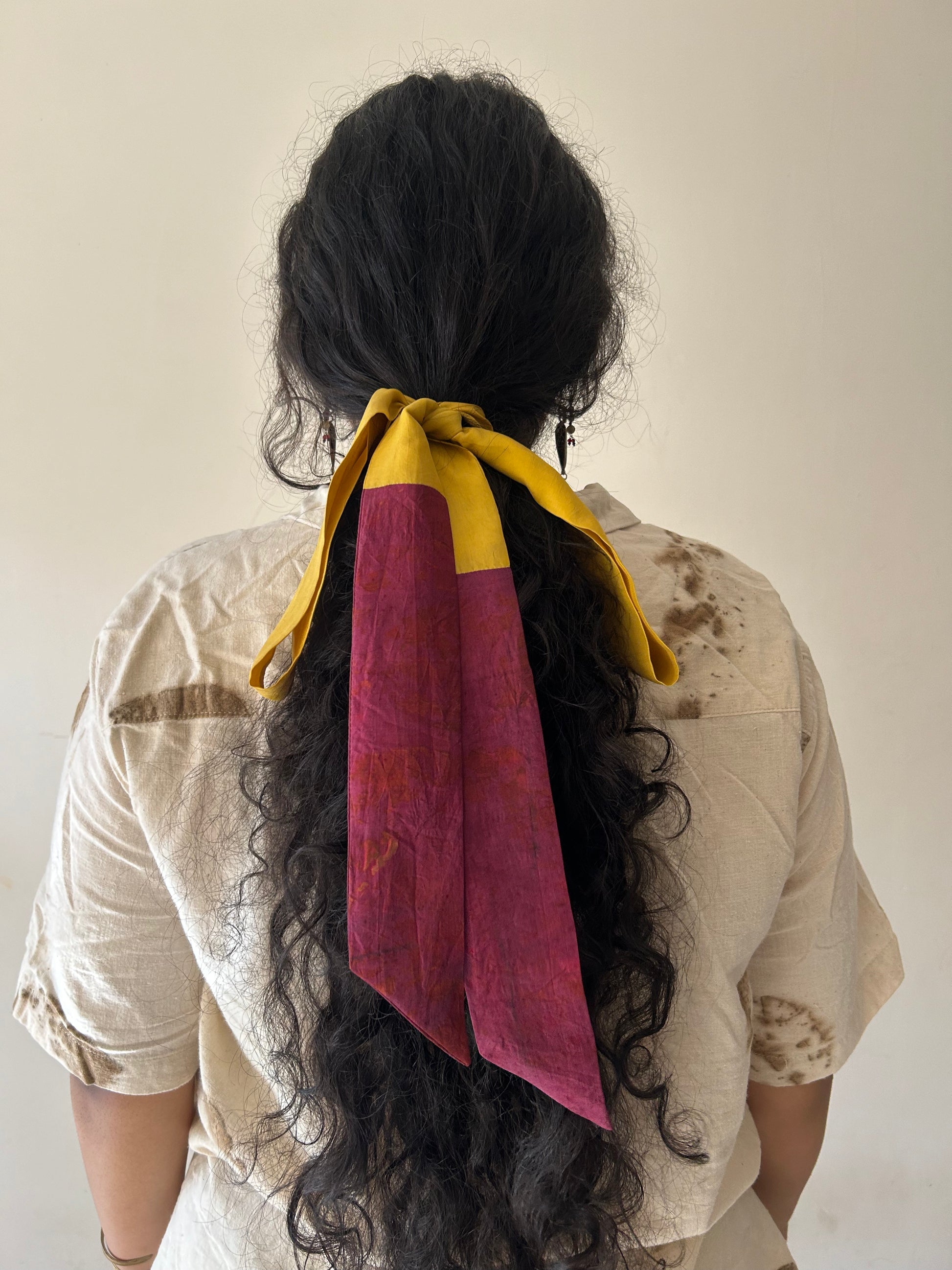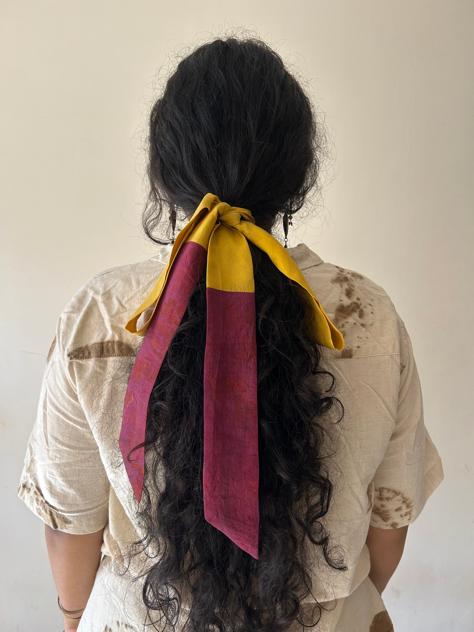 Introducing our exquisite Plant Dyed Silk Hair Ribbons, a delightful addition to your hair accessories collection. Crafted with care and creativity, these ribbons are not only stunning but also environmentally conscious as they are made from leftover fabric.