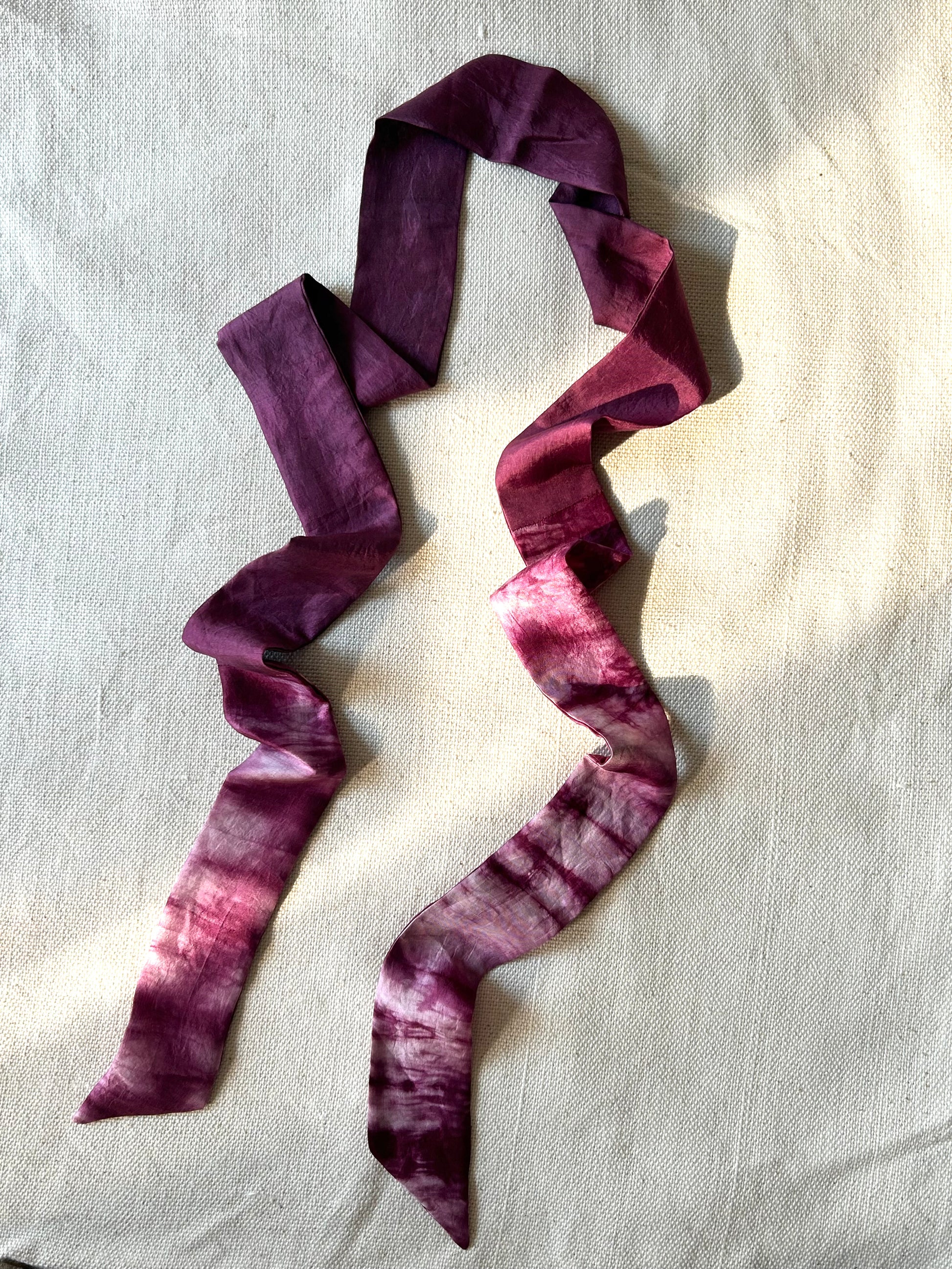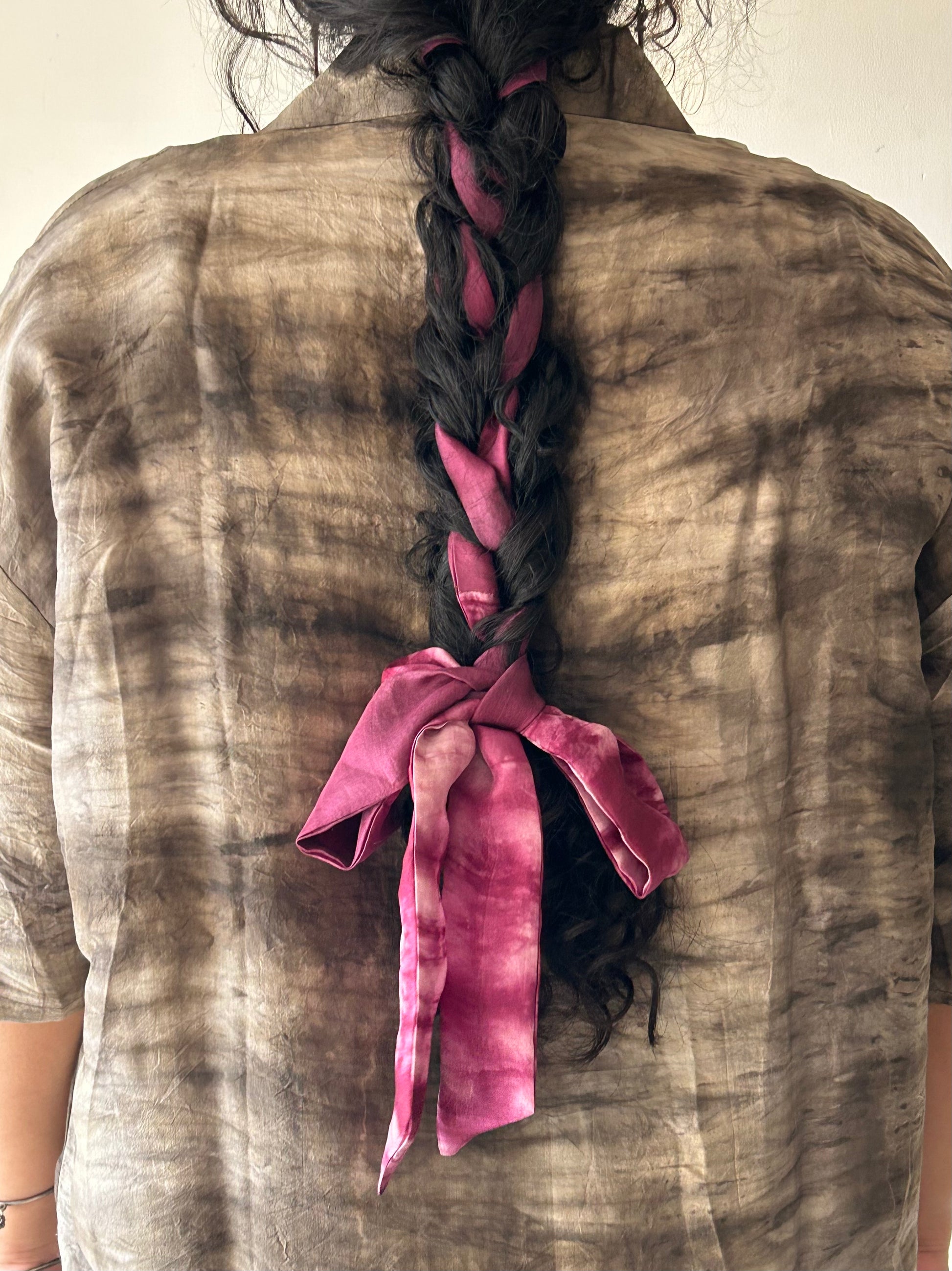 Introducing our exquisite Plant Dyed Silk Hair Ribbons, a delightful addition to your hair accessories collection. Crafted with care and creativity, these ribbons are not only stunning but also environmentally conscious as they are made from leftover fabric.