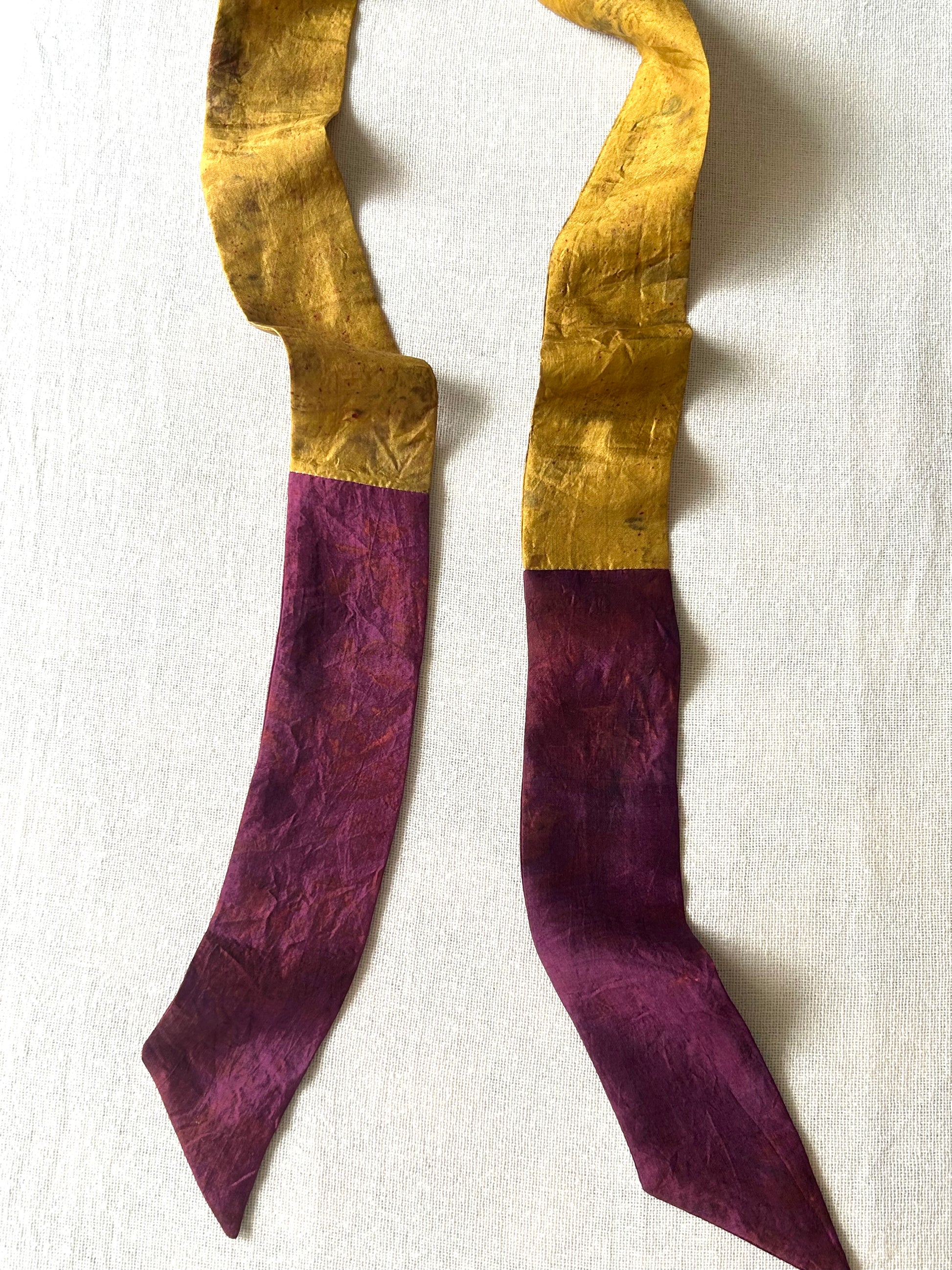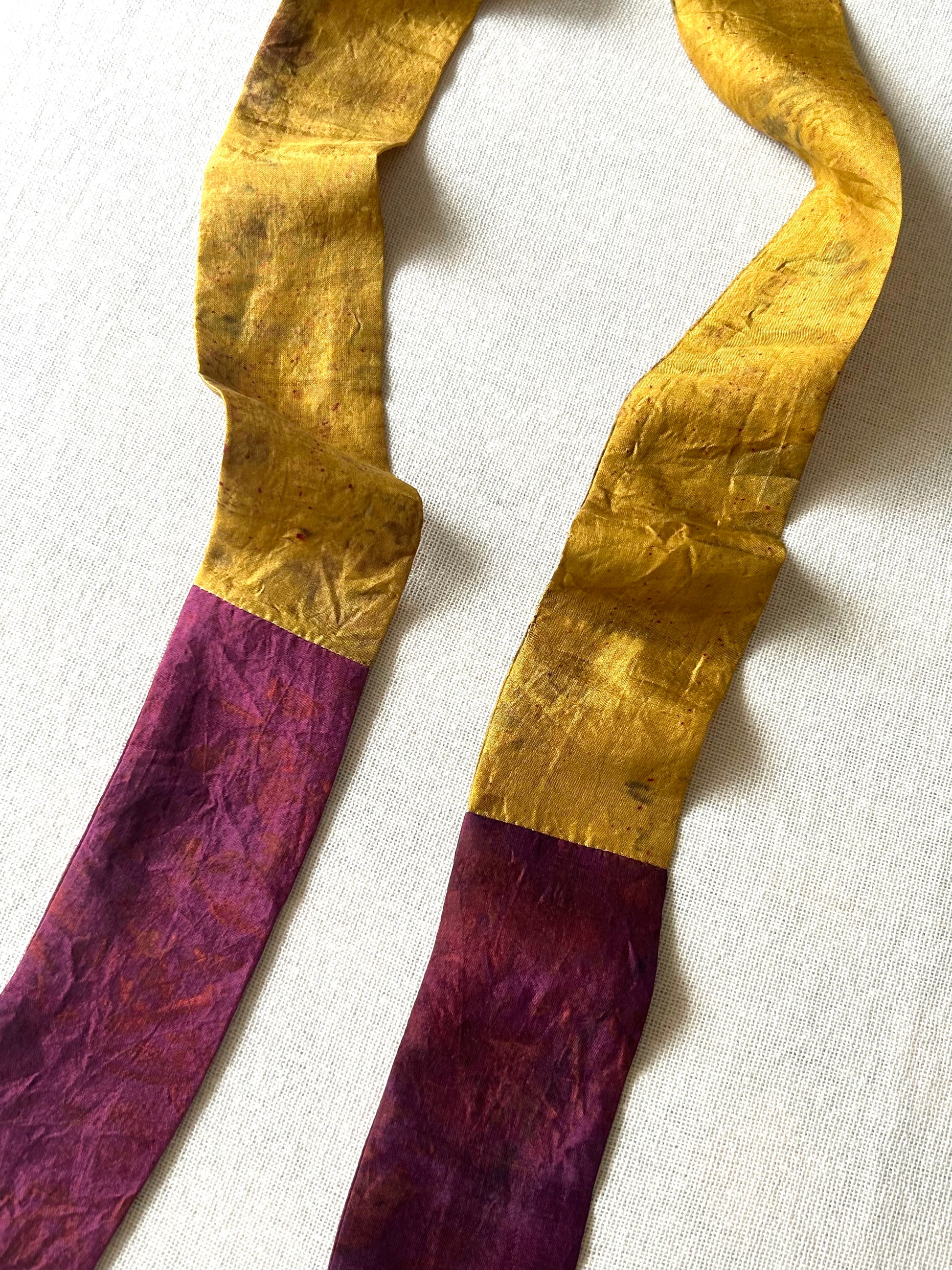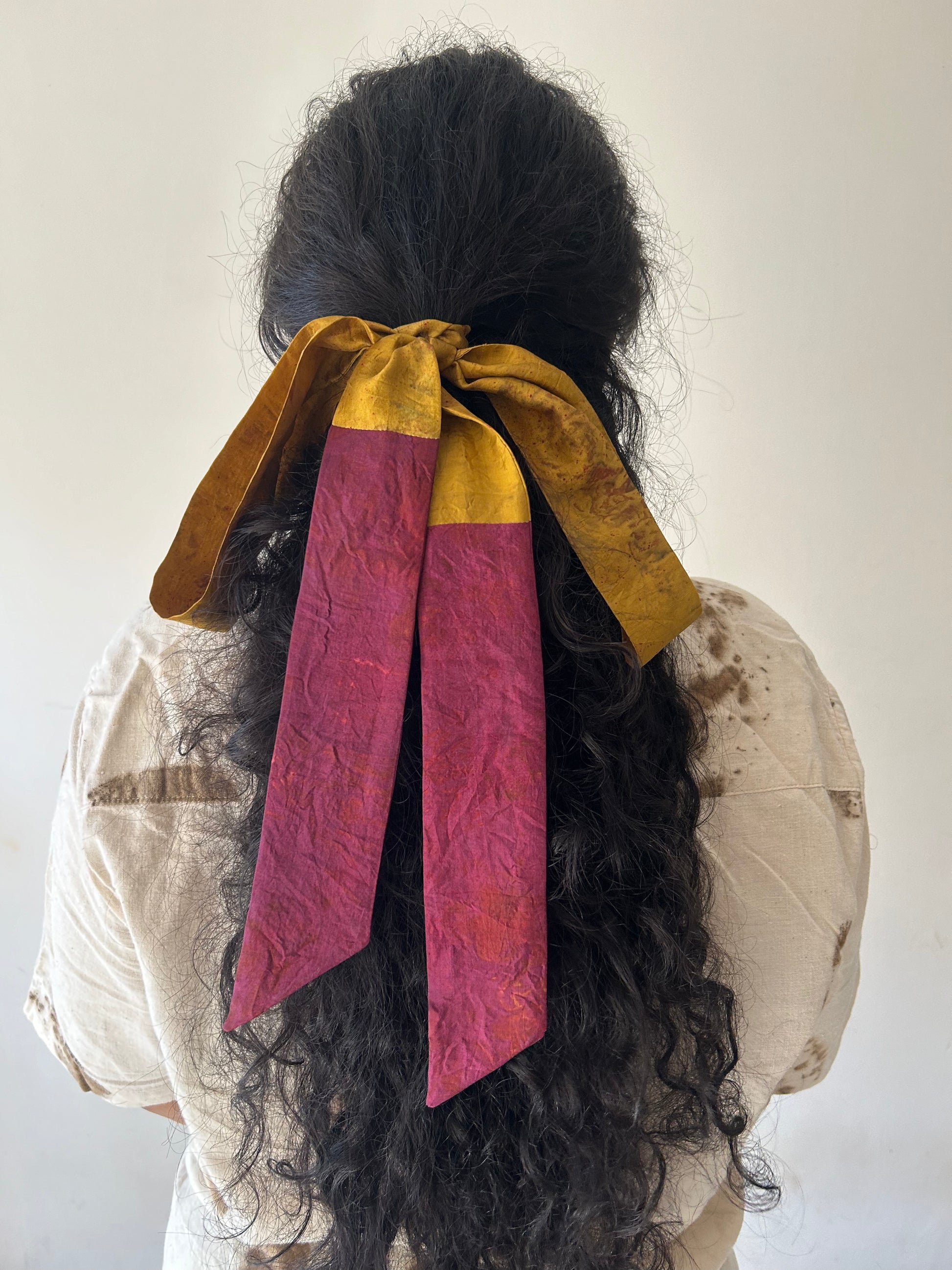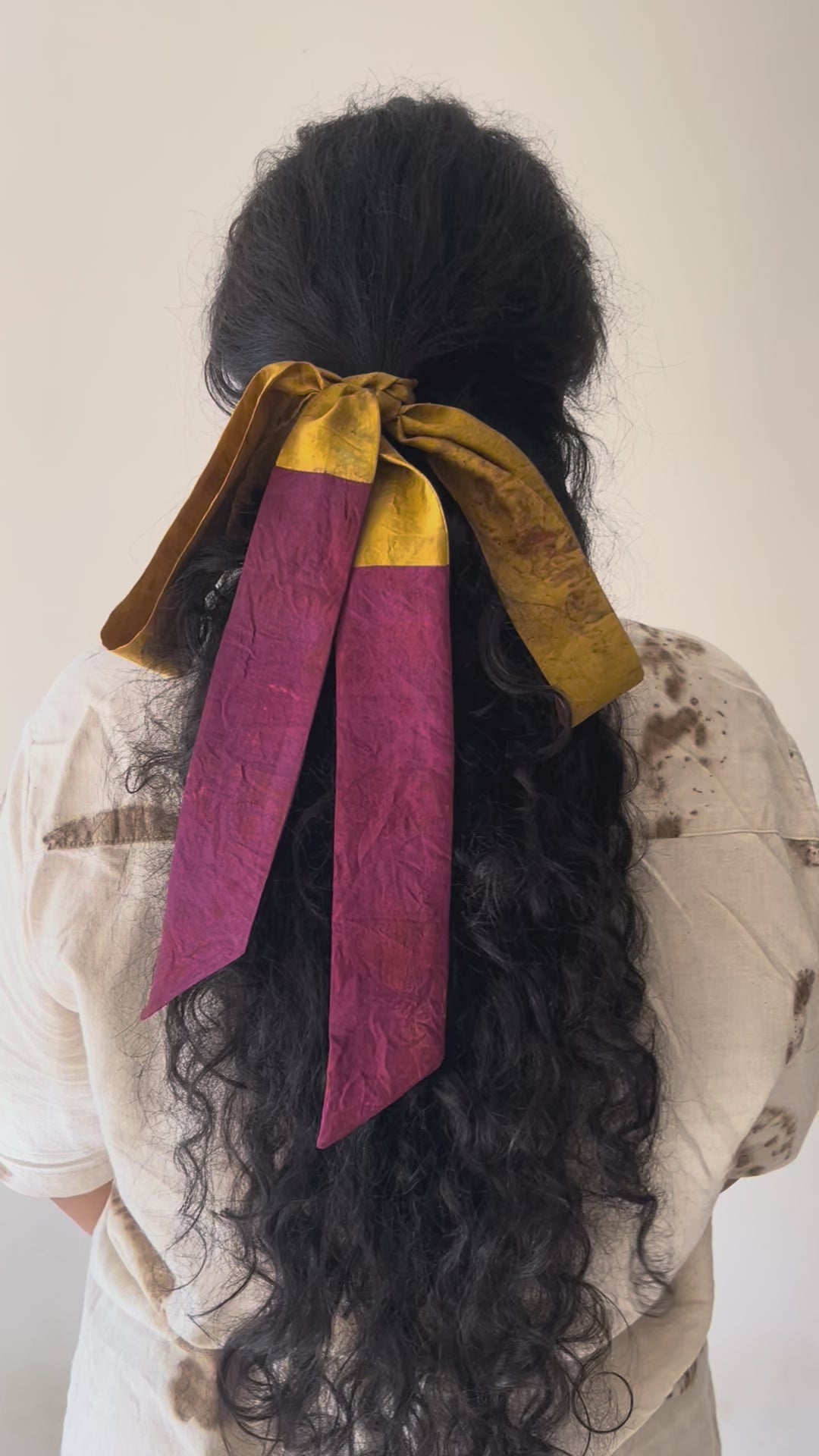 Introducing our exquisite Plant Dyed Silk Hair Ribbons, a delightful addition to your hair accessories collection. Crafted with care and creativity, these ribbons are not only stunning but also environmentally conscious as they are made from leftover fabric.