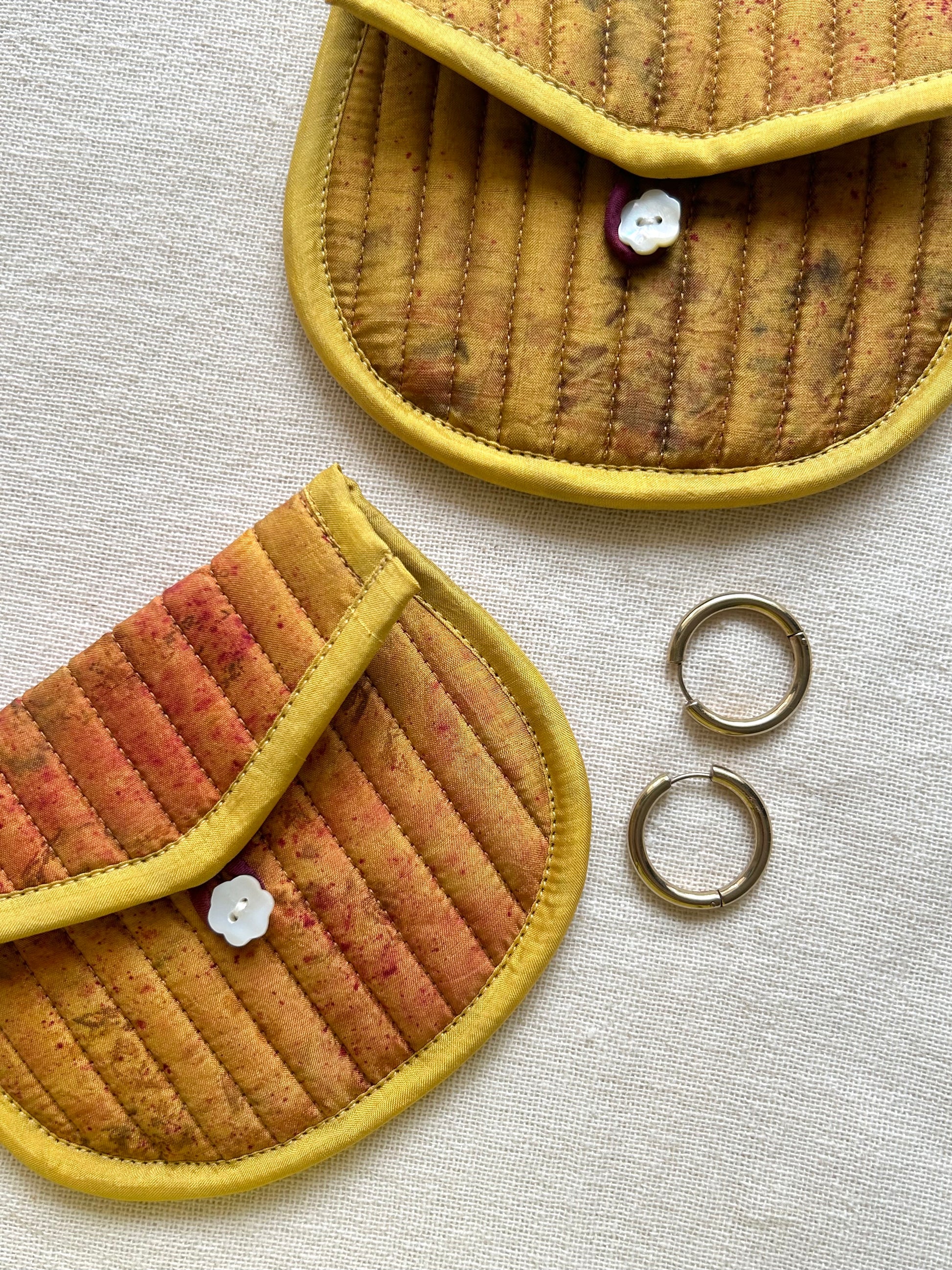 Our Silk Quilted Trinket Pouch is a charming and functional piece crafted with love and intention. Made using leftover pieces of our naturally dyed handwoven silk, this pouch celebrates a zero-waste approach.