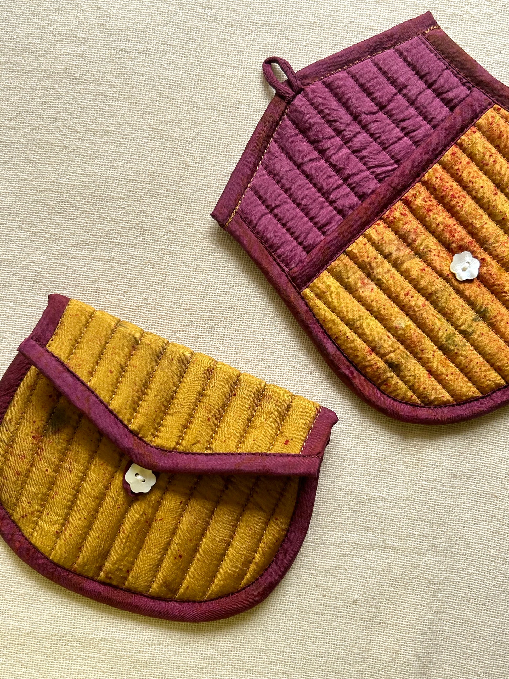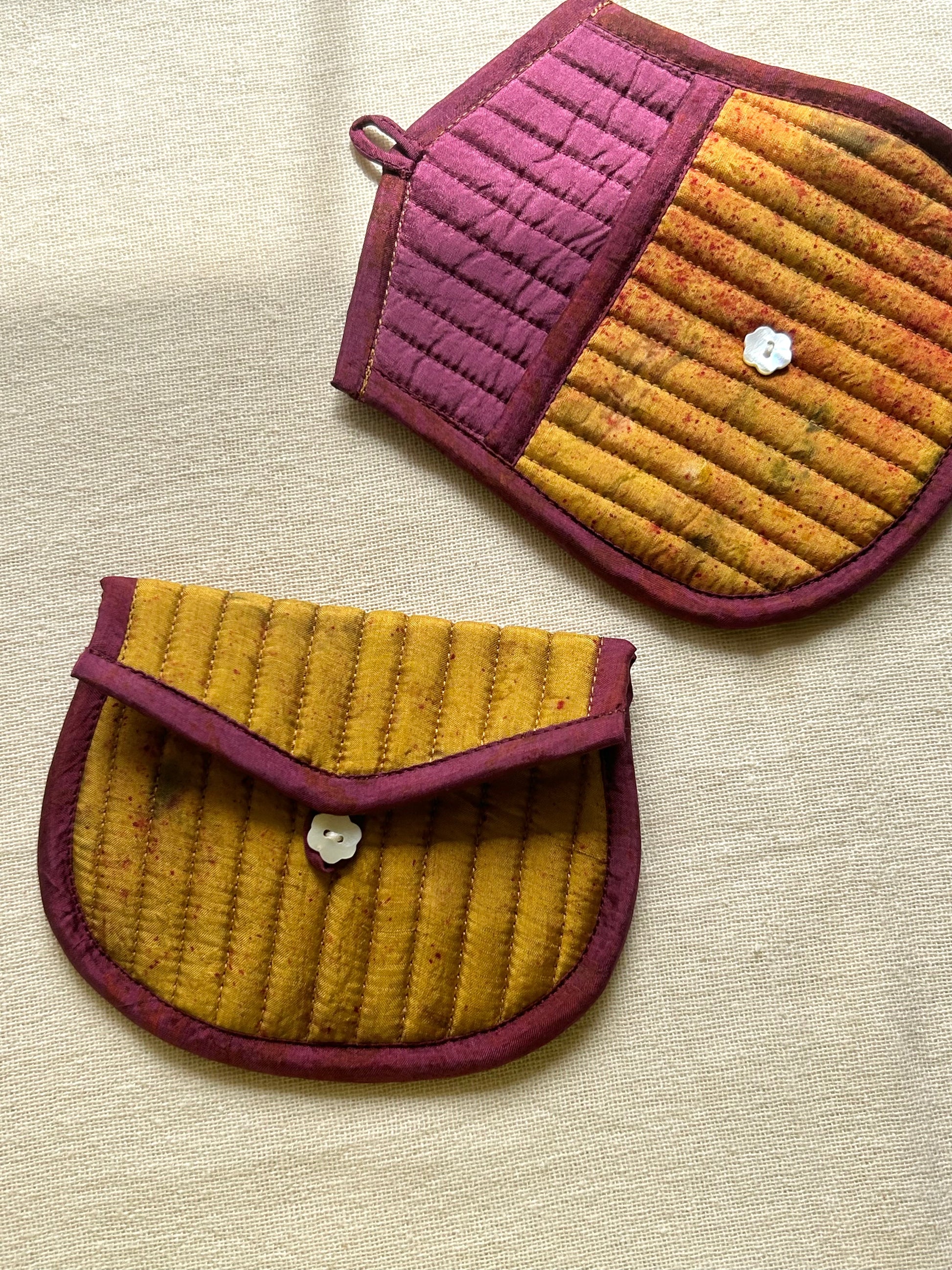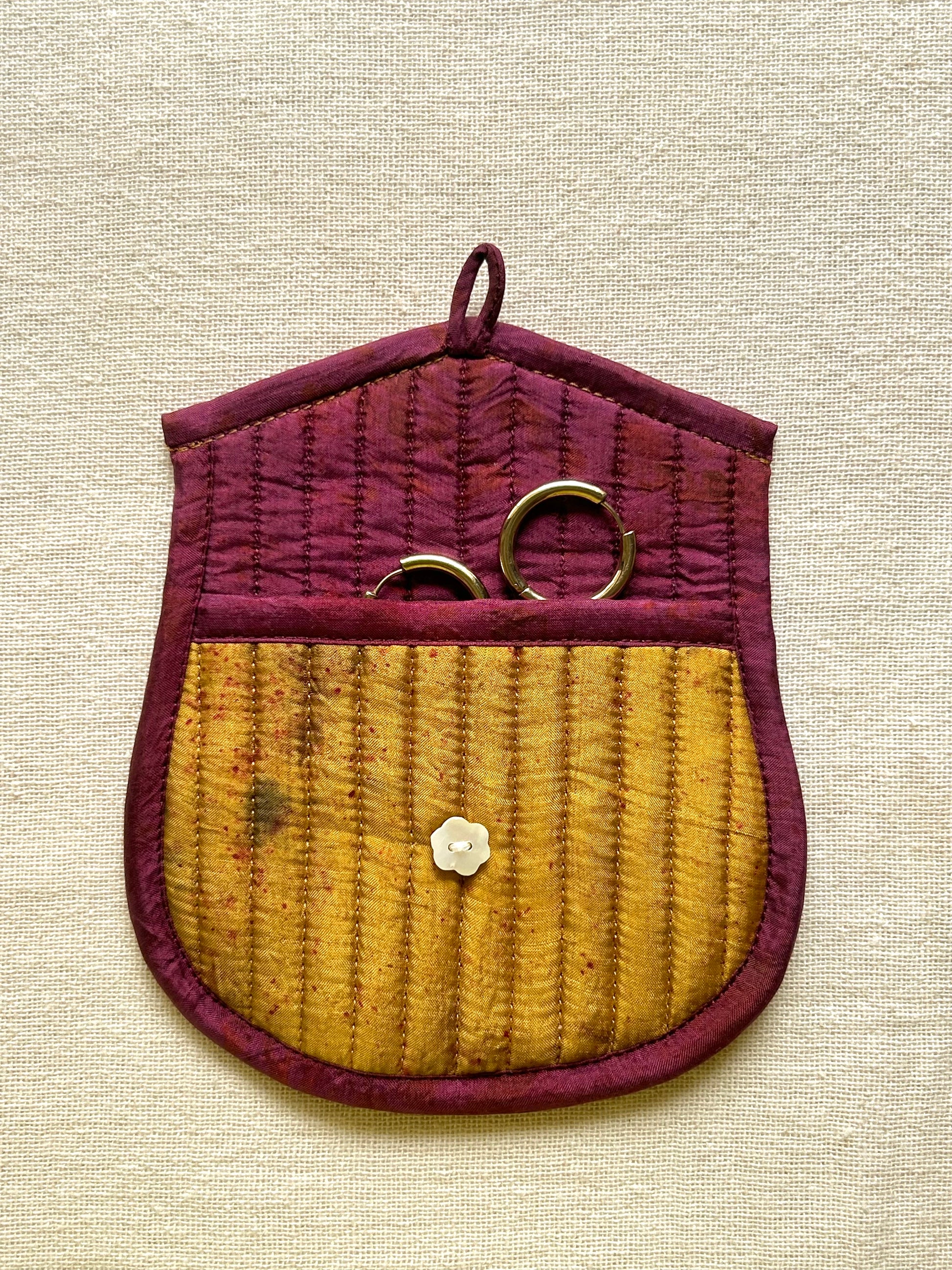Our Silk Quilted Trinket Pouch is a charming and functional piece crafted with love and intention. Made using leftover pieces of our naturally dyed handwoven silk, this pouch celebrates a zero-waste approach.