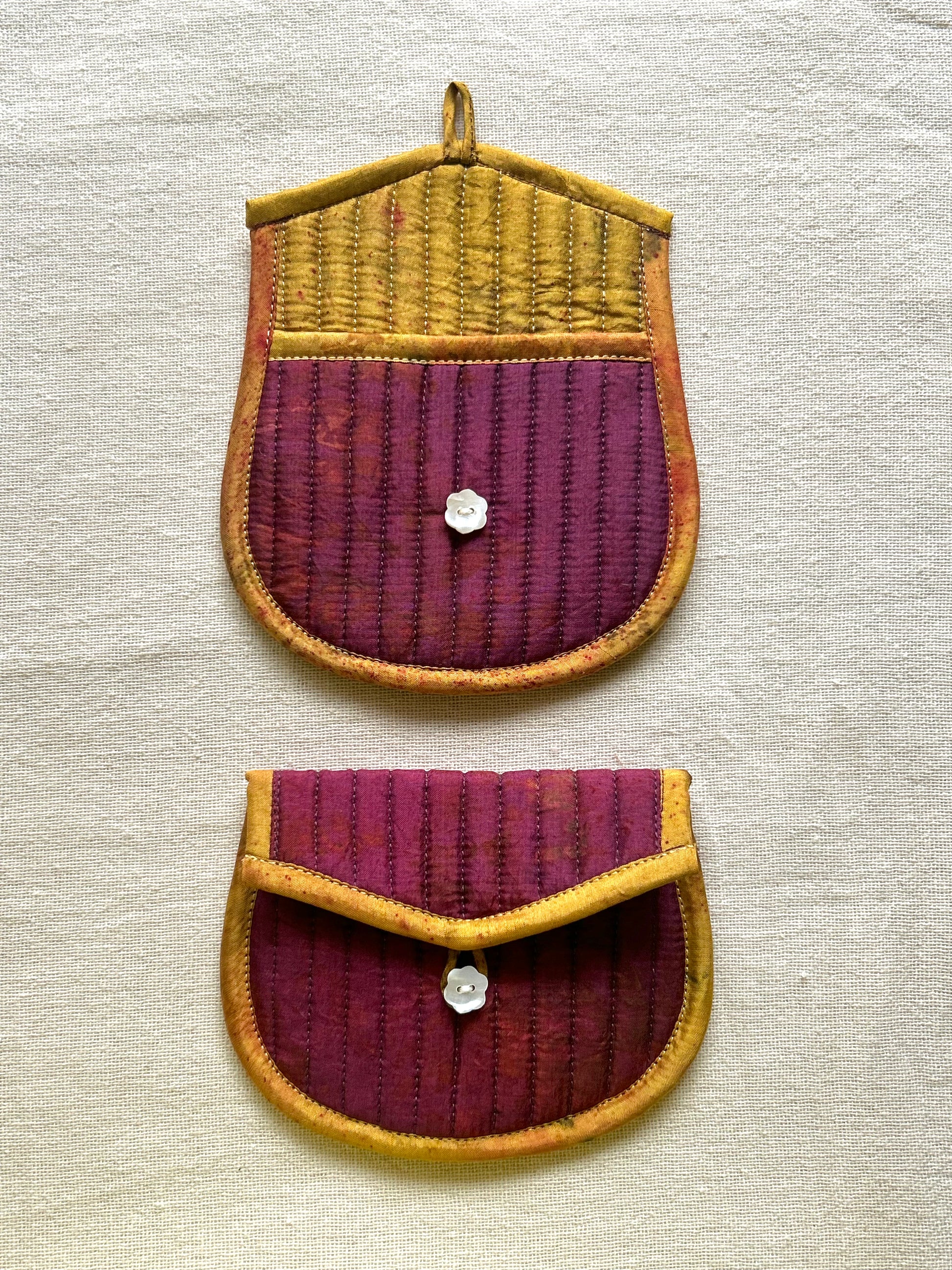 Each pouch is unique and carries the natural beauty and variation of botanical dyes. Slight irregularities are a mark of the hand-dyeing process and the organic nature of the materials used.